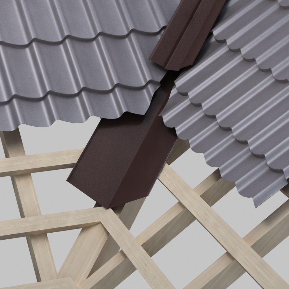 Нижняя (внутренняя) ендова для металлочерепицы является важнейшим элементом, обеспечивающим отвод воды с места стыка на кровле двух скатов, образующих внутренний угол.