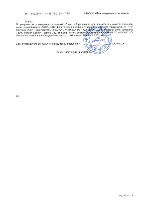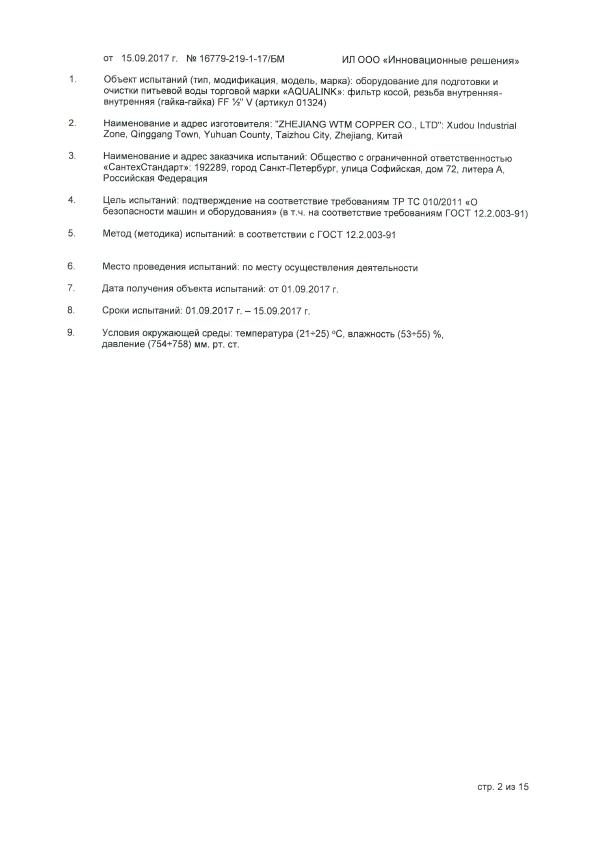 Фильтр устанавливается в горизонатльном или вертикальном положении (движение потока - сверху вниз). Корпус и пробка фильтра изготовлены из латуни марки CW617N (европейский стандарт EN 12165) горячим прессованием и никелированы. Между корпусом и пробкой фильтра предусмотрена тефлоновая уплотнительная прокладка, а в пробке имеется отверстие для пломировки.
