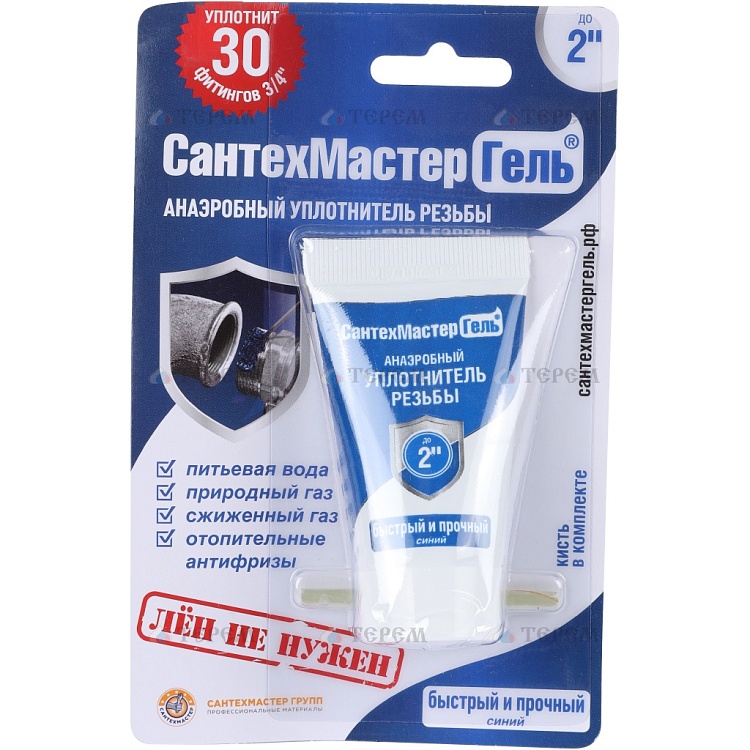 Используется для герметизации соединений до 2 дюймов. Герметизация происходит без использования льна. СантехМастер Гель защищает от от коррозии, не усаживается и не засоряет фильтры и узкие проходы.