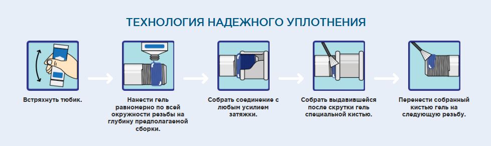 СантехМастер Гель синий - резьбовой сантехнический герметик со средней степенью фиксации соединения. Используется для герметизации металлических резьб, фитингов и фланцев.