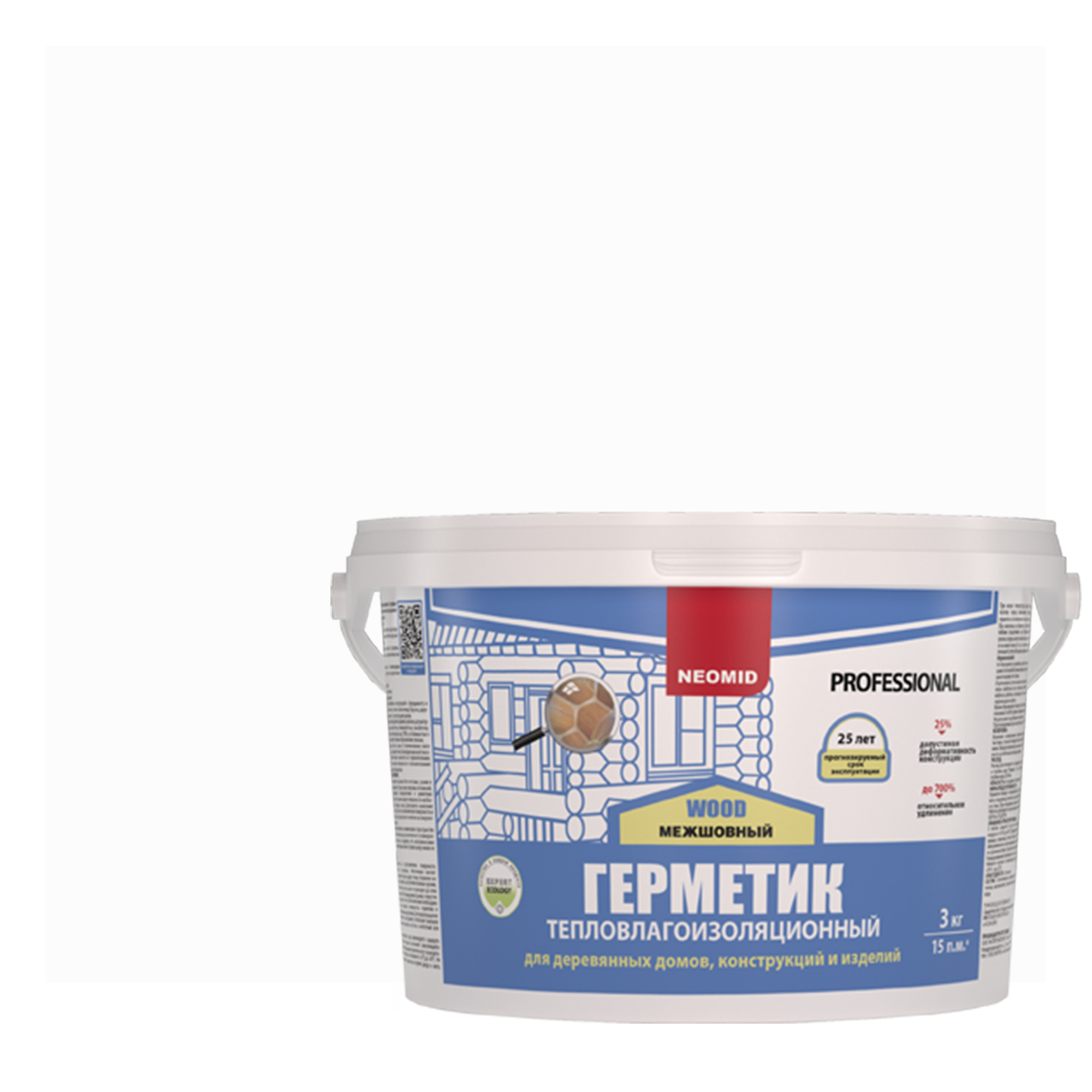 Герметик Neomid Wood Professional межшовный - предназначен для деревянных поверхностей, для заделки и долговременной герметизации.