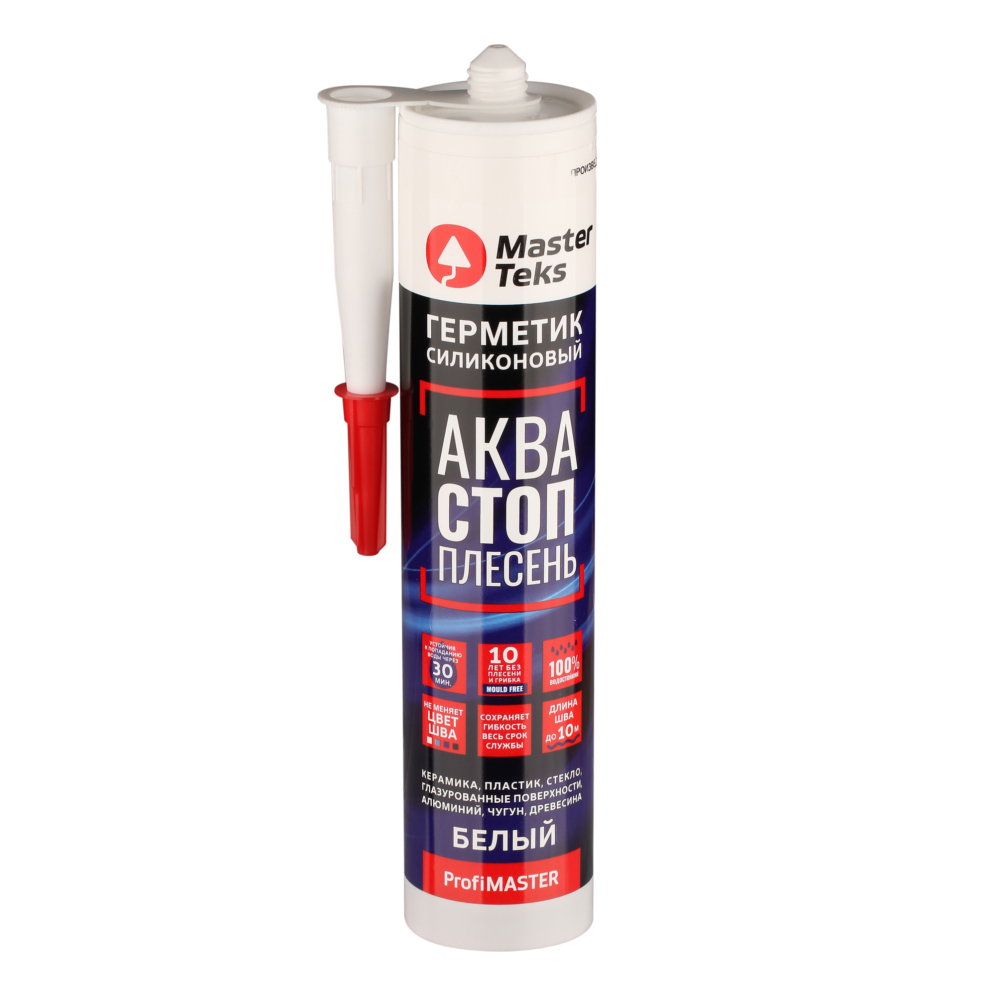 Герметик силиконовый MasterTeks Аква Стоп Плесень белый 280 мл - высокотехнологичный однокомпонентный силиконовый герметик, защищающий затвердевший герметик от появления плесени и обеспечивающий его безупречный внешний вид в течении как минимум 10 лет при условии регулярной очистки.