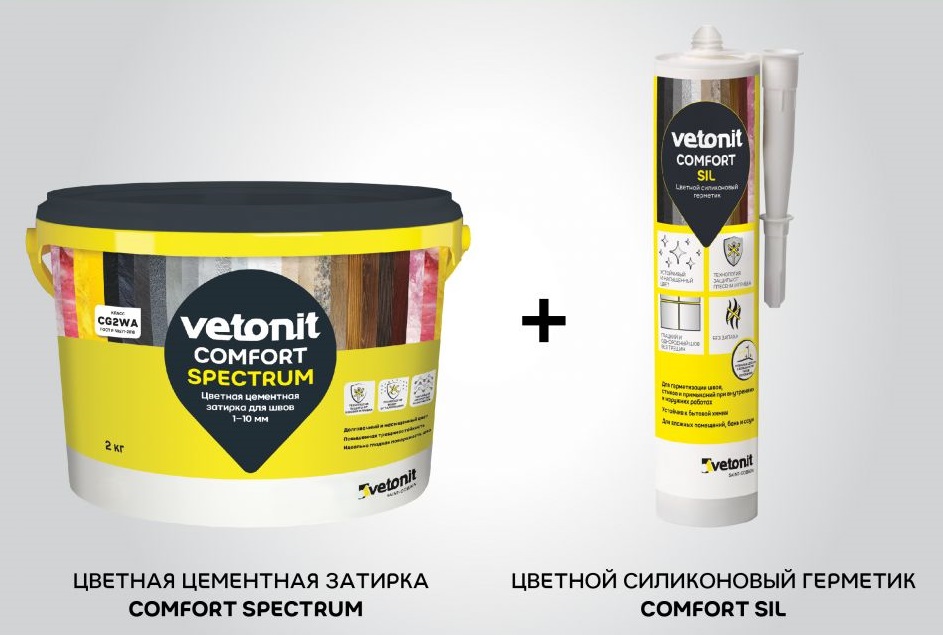 - Цвета идеально соответствуют с затирками vetonit comfort spectrum