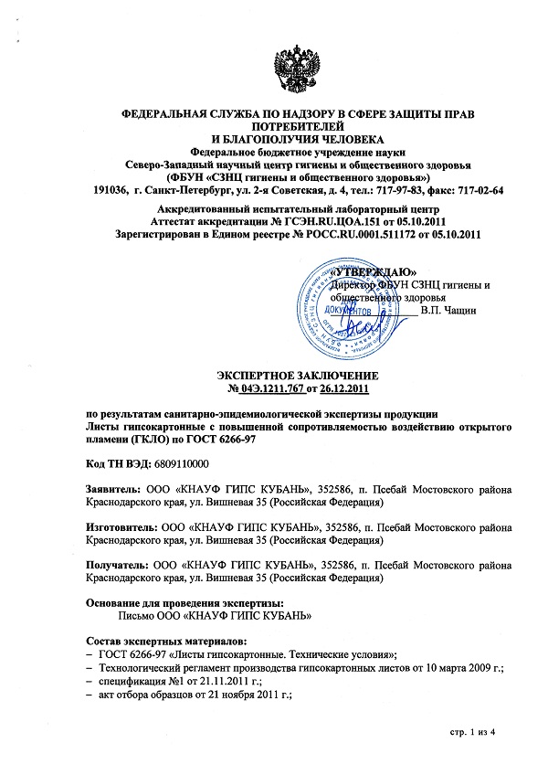 КНАУФ-листы огнестойкие выпускаются в соответствии с ГОСТ 32614-2012 (EN 520:2009) и представляют из себя прямоугольный материал, состоящий из двух слоев специального картона с прослойкой из гипсового теста с армирующими добавками, боковые кромки зафальцовываются краями картона (лицевого слоя). Сердечник формируется с применением гипсового вяжущего марки Г4 по ГОСТ 125-79.