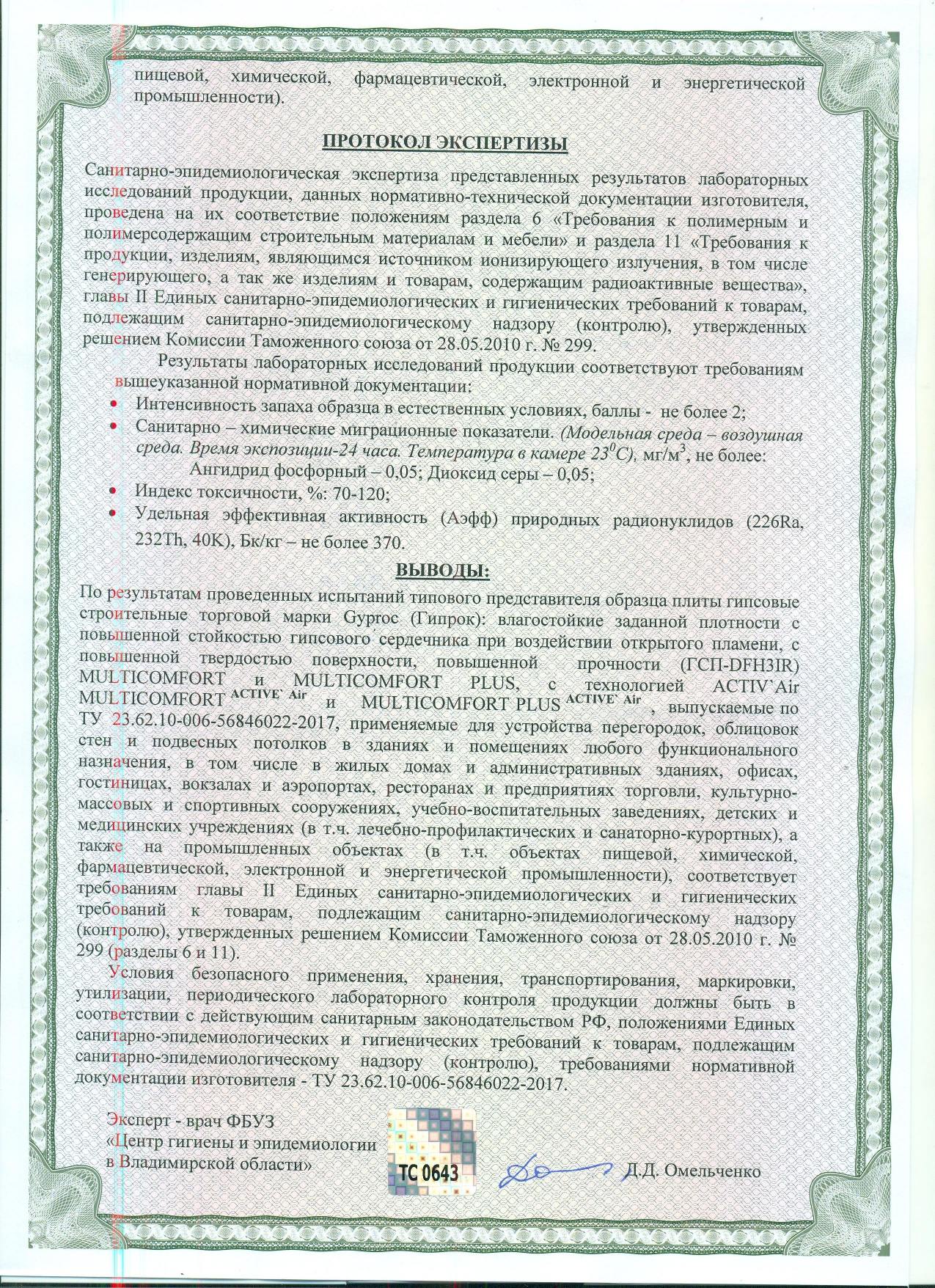| Воспламеняемость: | В2 (В1 при использовании шпаклевки Гипрок Фаст-60 толщиной от 0.5мм) |