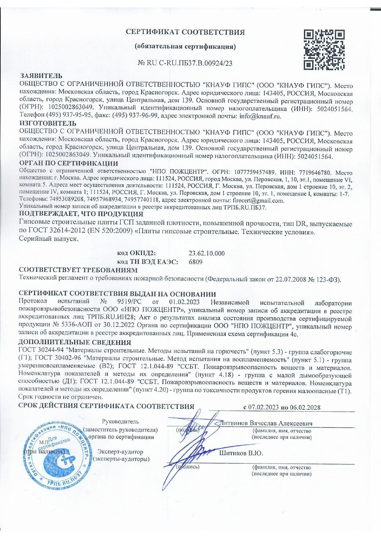 Листы выпускаются в соответствии с ГОСТ 32614-2012 (EN 520:2009).