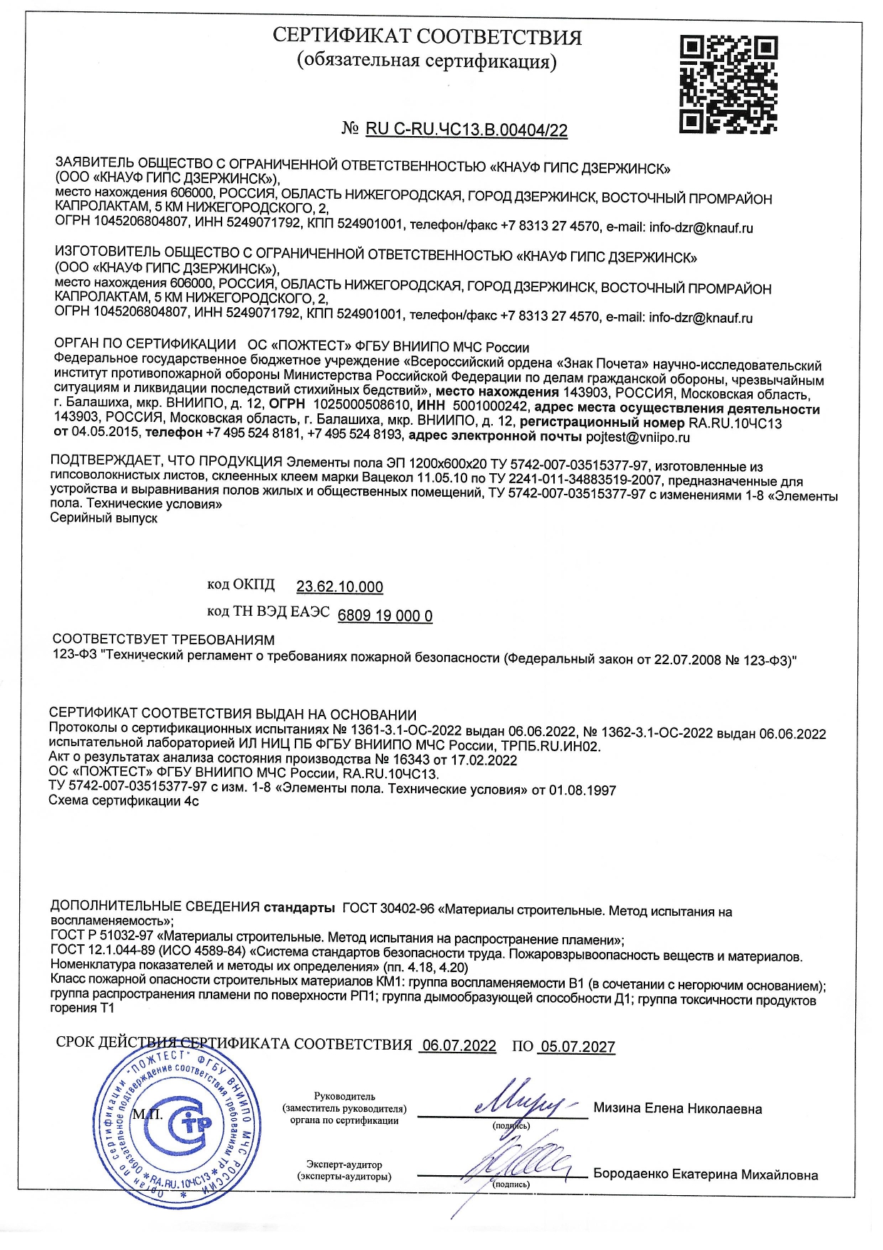 | Группа воспламеняемости: | В1 (ГОСТ 30402) |