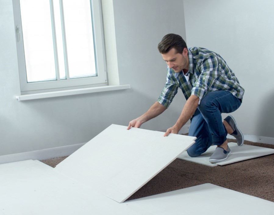 Изделие заводской готовности, выполненное из гипсоволокнистых влагостойких КНАУФ-суперлистов (ГВЛВ), для создания «сухой» стяжки — сборного основания пола.