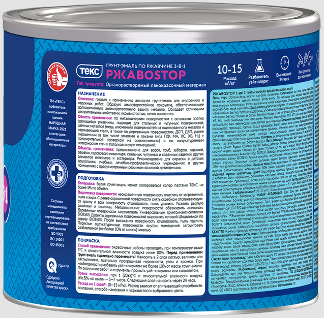 Способ применения: перед нанесением необходимо тщательно перемешать, при необходимости разрешается разбавить уайт-спиритом (не более 10 %). При нанесении температура должна быть не ниже +5.
