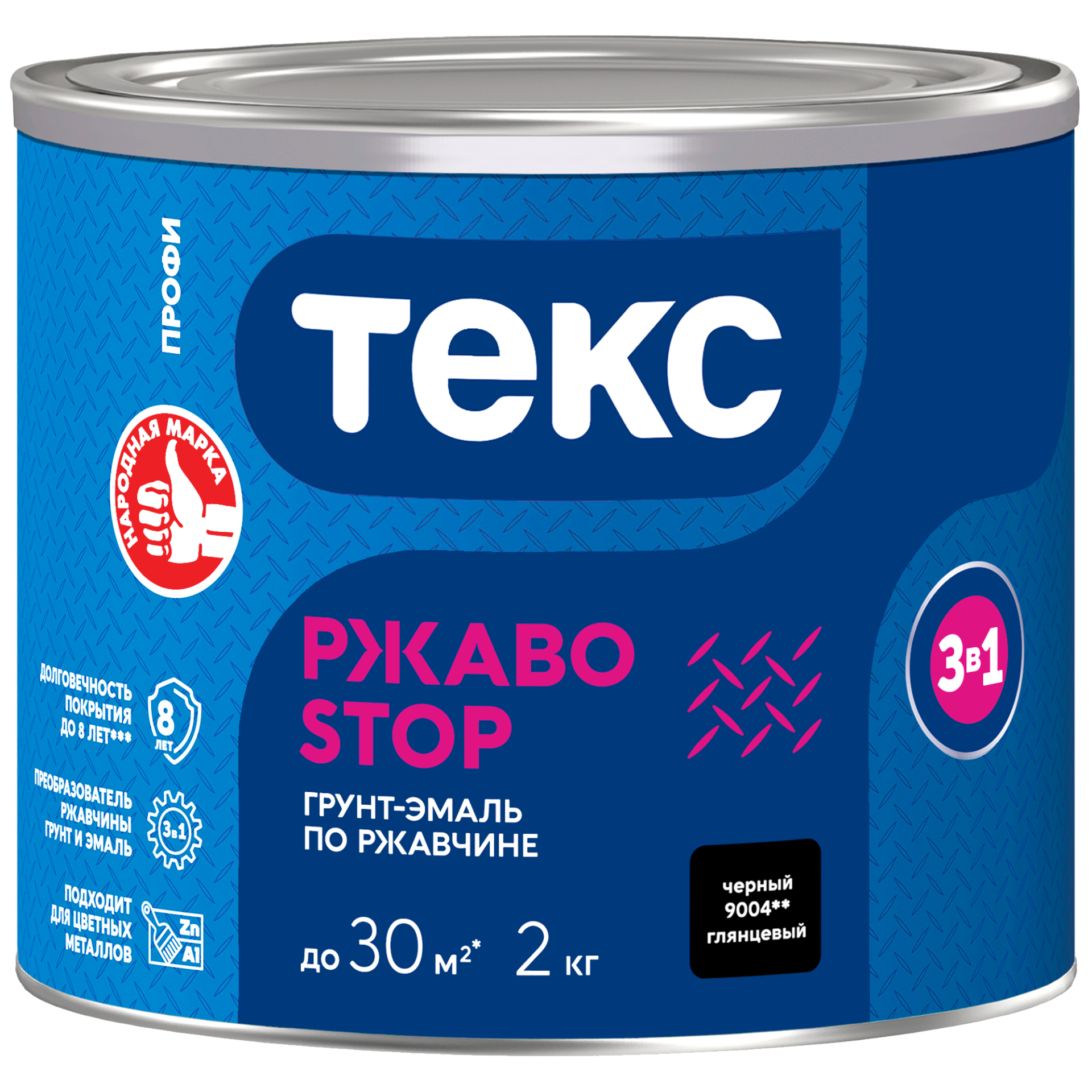 Грунт-эмаль по ржавчине Текс РжавоStop 3 в 1 черная глянцевая 2кг