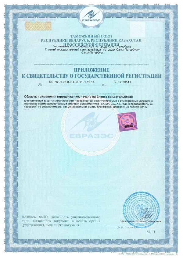Хранение: допускается хранение при отрицательной температуре, в этом случае перед применением необходимо выдержать банку при температуре от + 20 С до +/-2 С в течении 24 часов. После вскрытия эмаль можно хранить в плотно закрытой таре в течение срока годности.