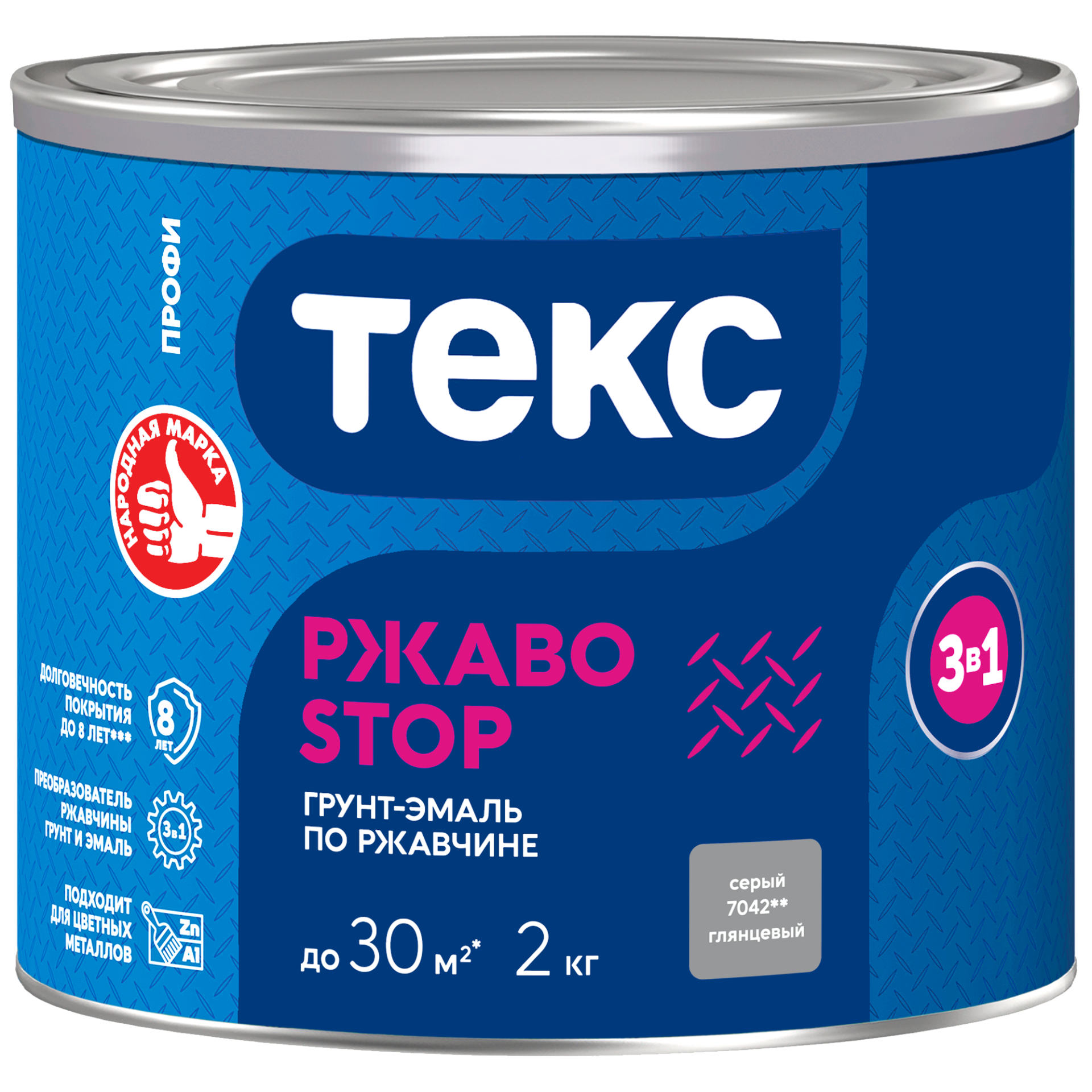 Грунт-эмаль по ржавчине Текс РжавоStop 3 в 1 серая глянцевая 2кг