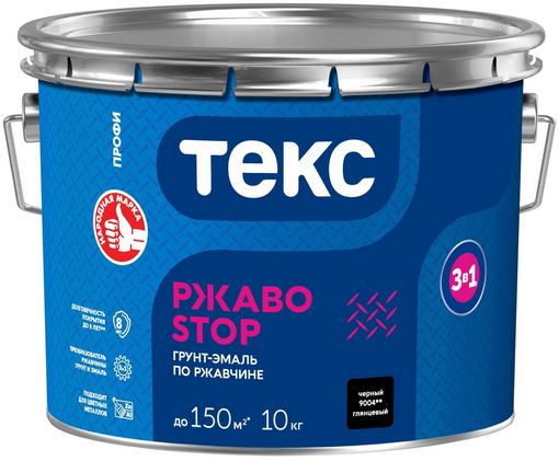 Грунт-эмаль по ржавчине Текс РжавоStop 3 в 1 черная глянцевая 10кг