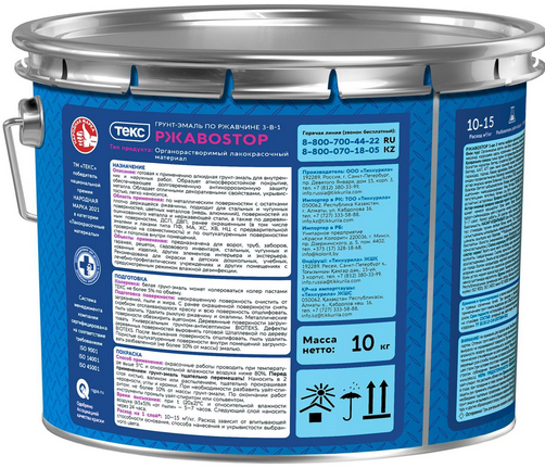 Грунт-эмаль по ржавчине Текс РжавоStop 3 в 1 серая глянцевая 10кг