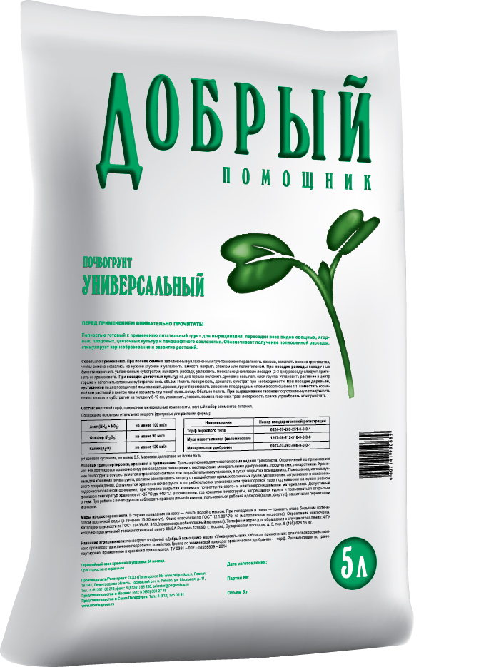 Добрый помощник - универсальный плодородный грунт, богатый минеральными и органическими компонентами.