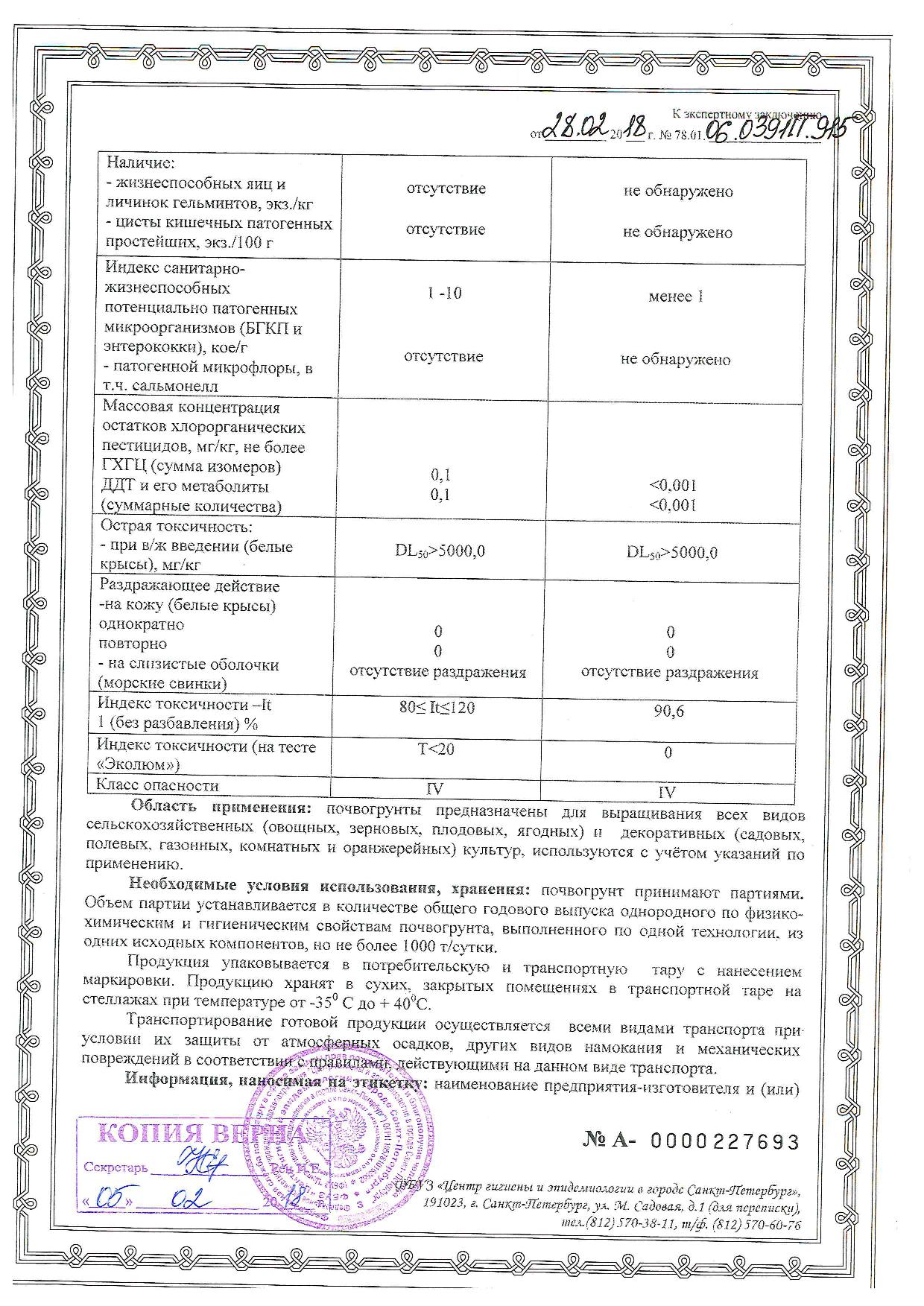 | Фосфор (Р2О5), не менее: | 90 мг/л |