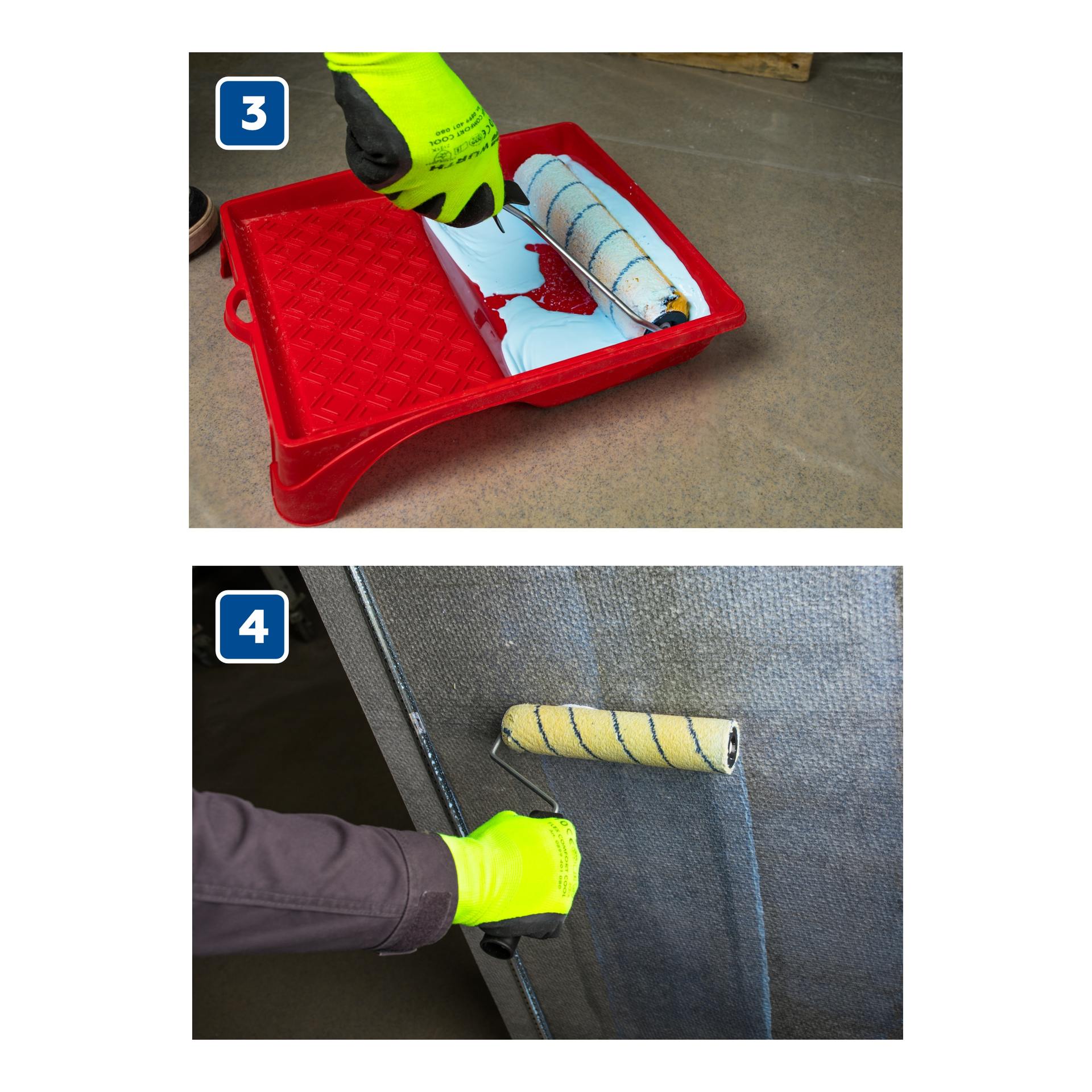 При грунтовании оснований под заливку наливных полов – вылейте готовый праймер на основание и разровняйте валиком, не допуская пропусков и образования луж, также можете использовать распылитель