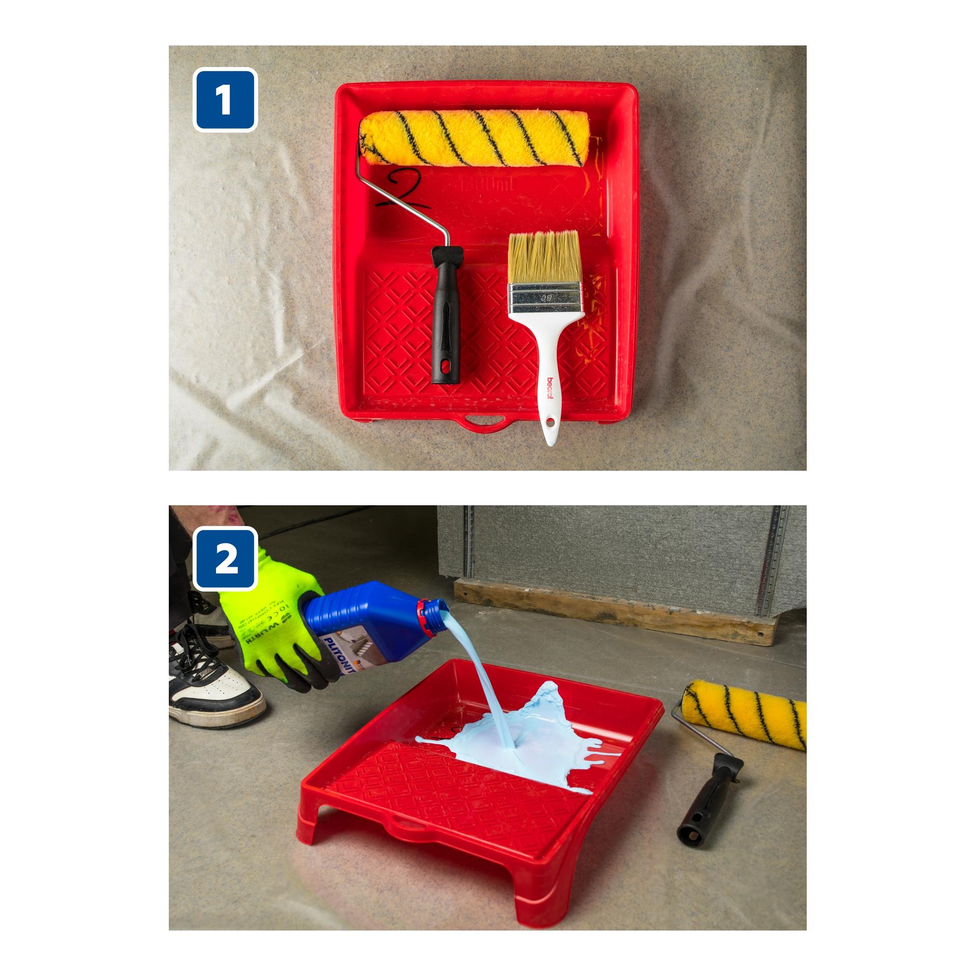Беру Грунт Плитонит 1 концентрат 10л перед окраской и оклейкой обоями с целью снижения водопоглощения основы. Для обработки поверхности использую валик или кисть, иногда использую распылитель. Высыхает грунтовка быстро.