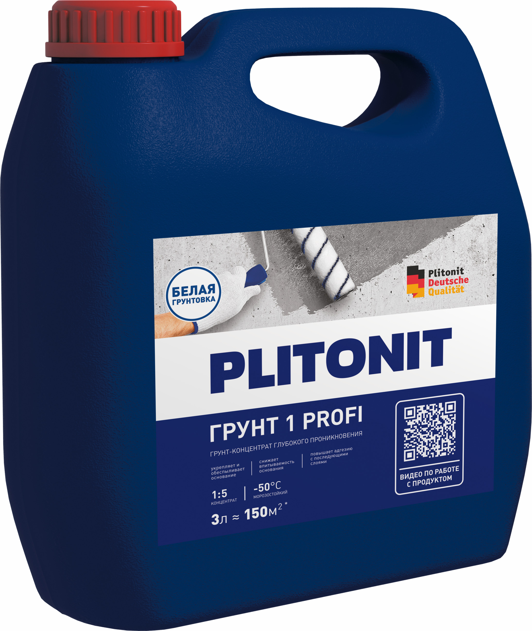 Грунтовка ПЛИТОНИТ Грунт 1 для наружных и внутренних работ 1:5 3л – предназначенная для обработки поверхностей перед нанесением штукатурных смесей на цементной и гипсовой основе, перед окраской, оклейкой обоями при внутренних и наружных работах. Смесь наносится на стены, полы, потолки на цементно-известковой основе, гипсокартонные листы. поверхность.