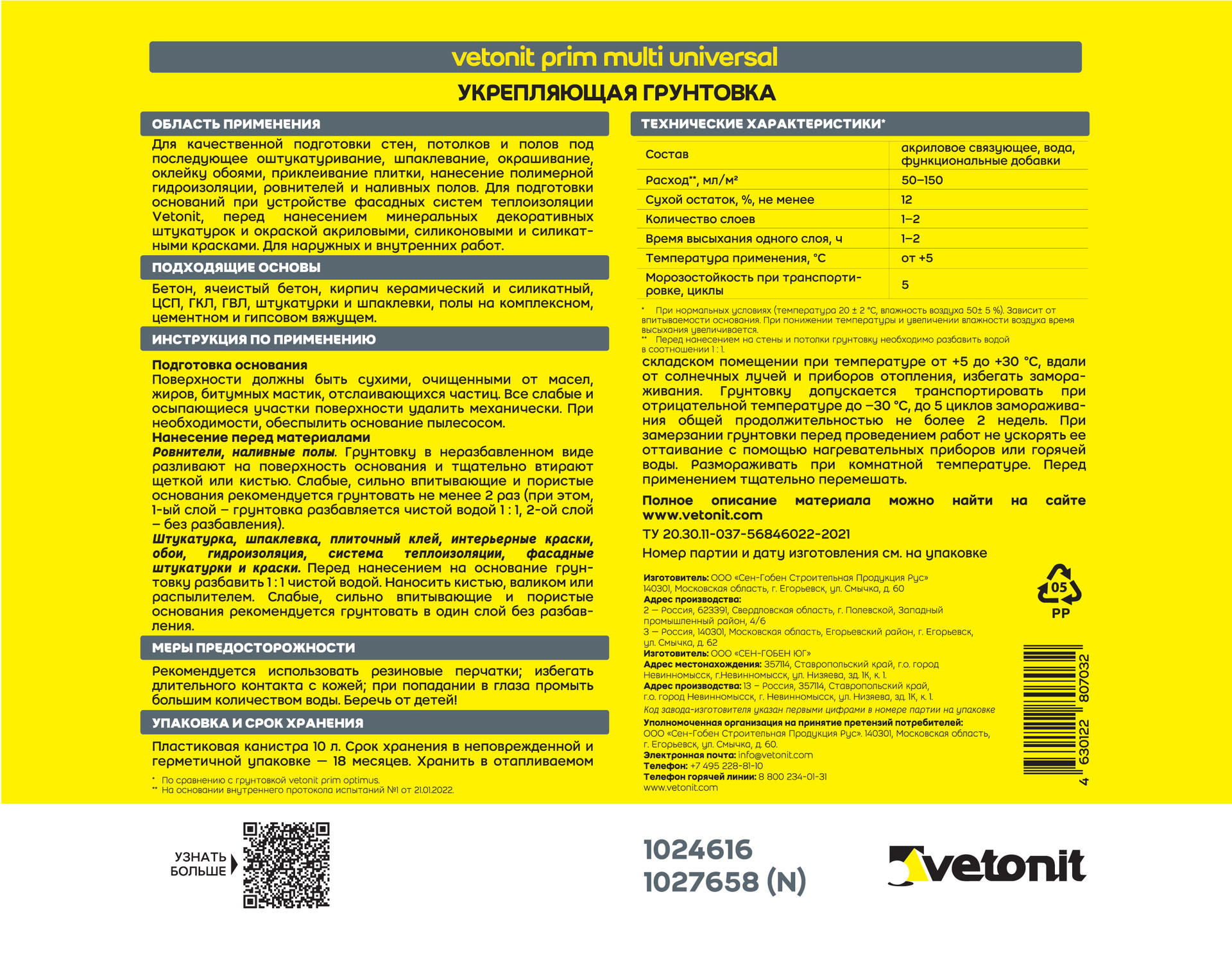 Подходит для предварительной подготовки оснований из бетона, ячеистого бетона, кирпича керамического и силикатного, ЦСП, ГКЛ, ГВЛ, штукатурки и шпаклевки, полов на комплексном и цементном вяжущем.