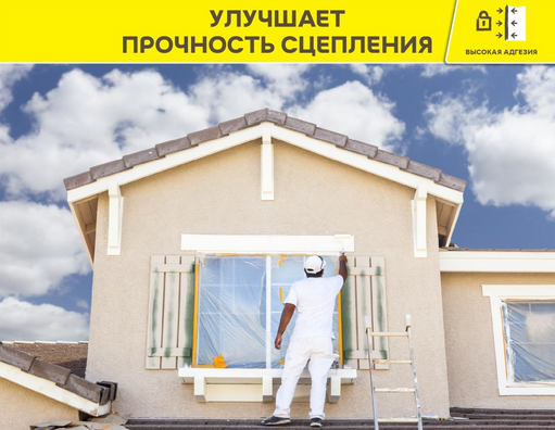 Подходит для грунтования бетона, цементно-известковых и известковых штукатурок и шпаклевок, базовых штукатурных слоев систем фасадной теплоизоляции, ГКЛ, ГВЛ и др.