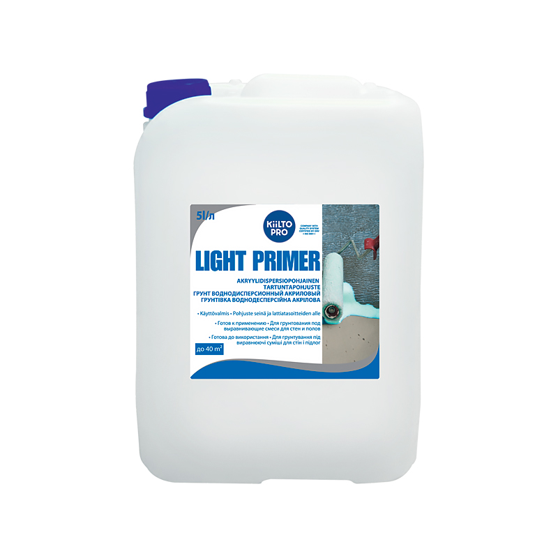 Kiilto Light Primer - готовый к применению воднодисперcионный акриловый грунт для наружных и внутренних работ по впитывающим влагу основаниям.