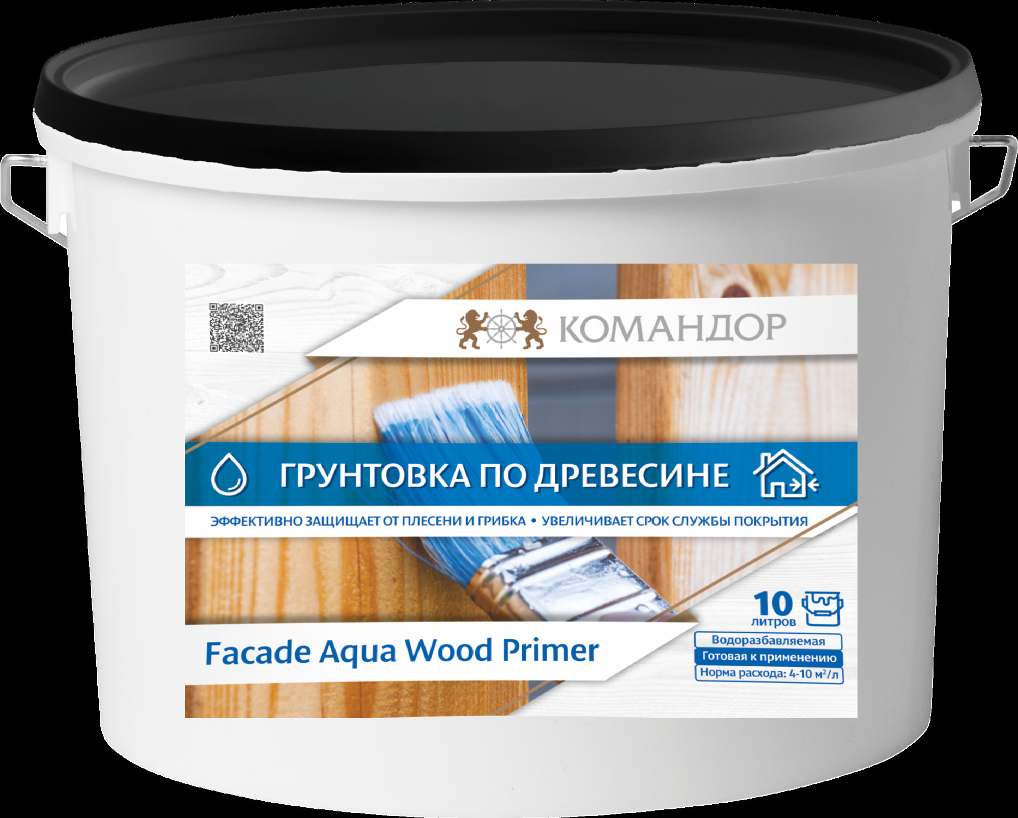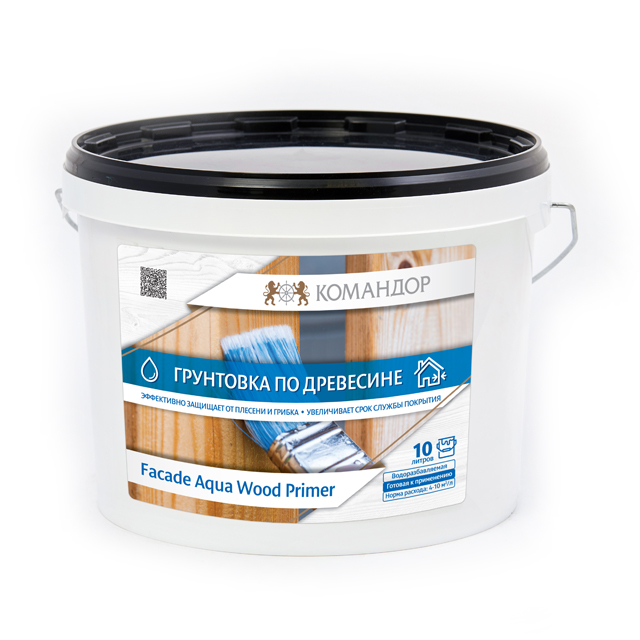 Грунтовка по древесине Командор Facade Aqua Wood Primer 10л