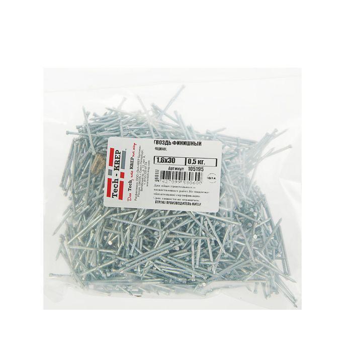 Гвоздь финишный оцинкованный 1,6 х 30мм 0,5кг