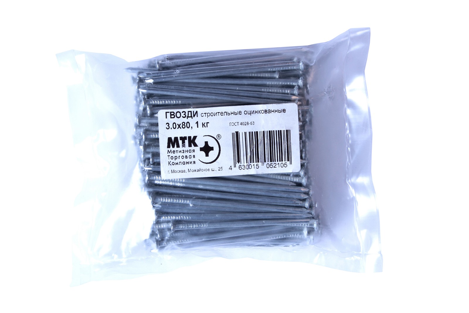 Гвозди оцинкованные 3,0 х 80мм 1кг/уп