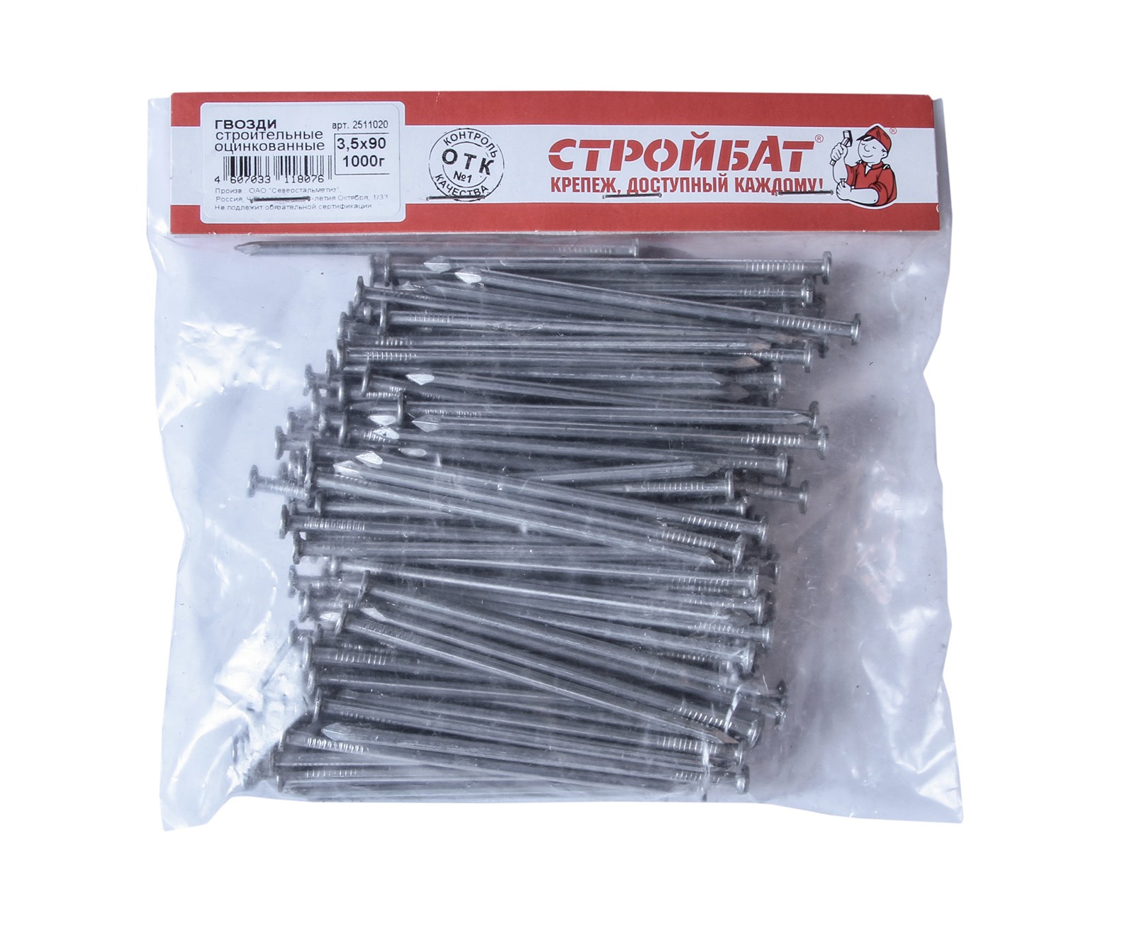 Гвозди оцинкованные 3,5 х 90мм 1кг/уп