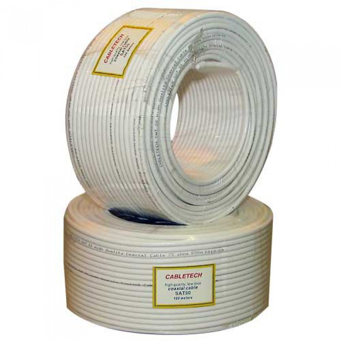 Кабель оснащен двойной экранизацией, придающей ему улучшенную устойчивость к помехам. Центральная жила сделана из омедненной стали и изолирована полиэтилентовым диэлектриком.