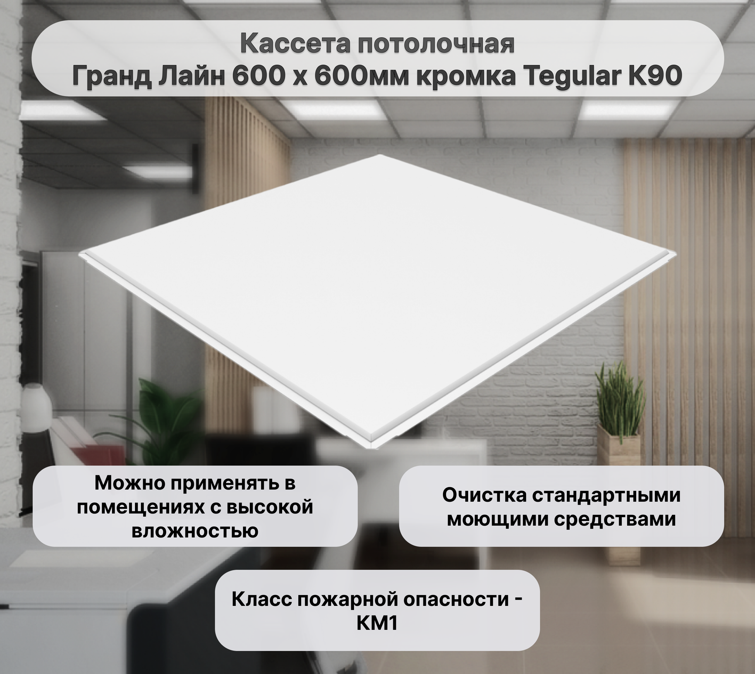 Кассета потолочная алюминиевая белая Гранд Лайн 600 х 600мм кромка Tegular К90