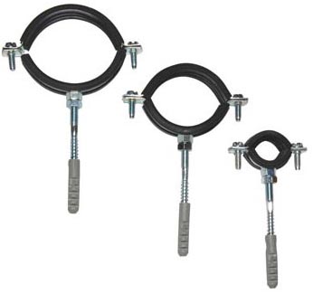 Состав: хомут с шурупом, уплотнитель – резина, дюбель.
