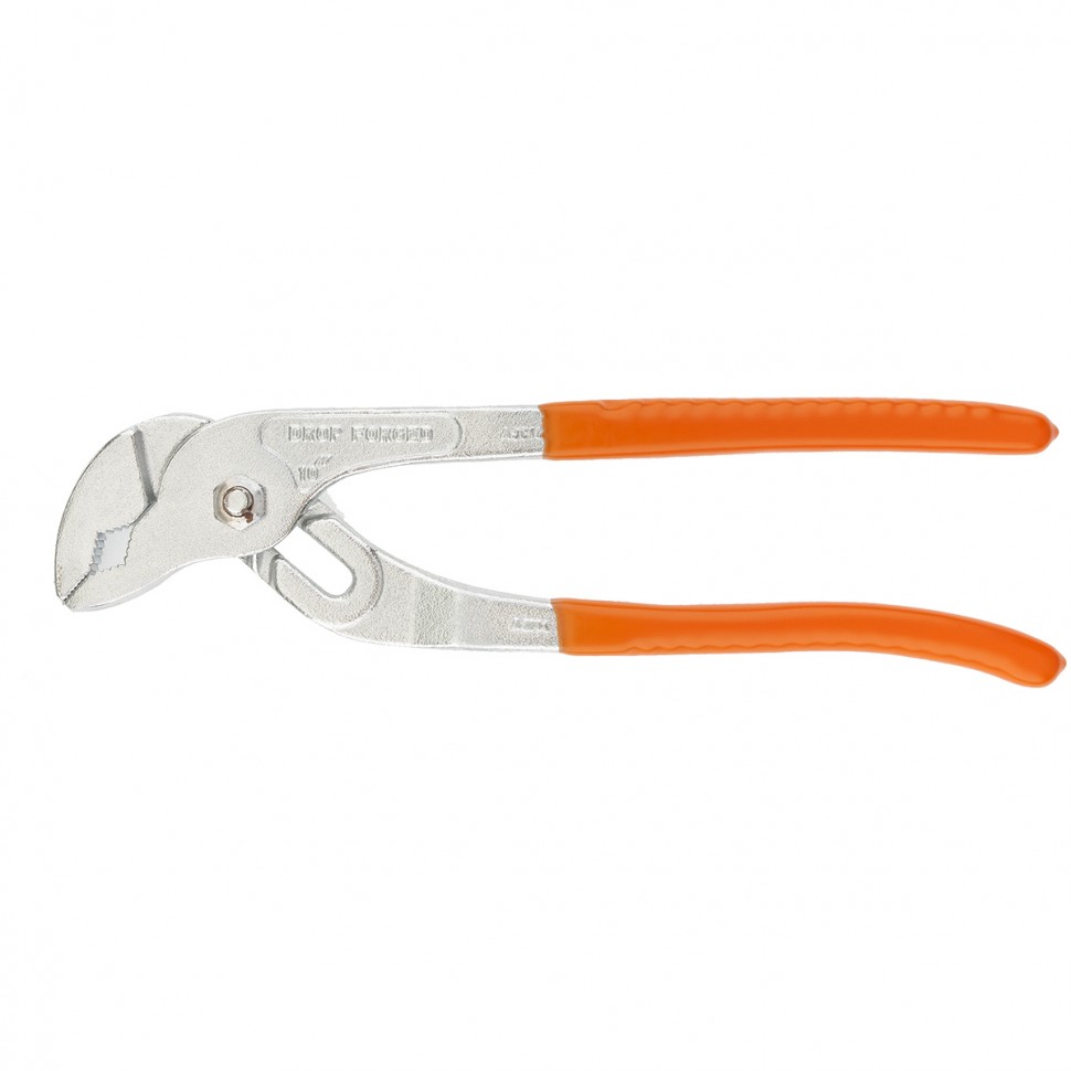 Клещи переставные предназначены для захвата различных по форме изделий, могут использоваться в качестве трубного или разводного ключ. Изготовлены из углеродистой стали, рукоятки покрыты ПВХ.