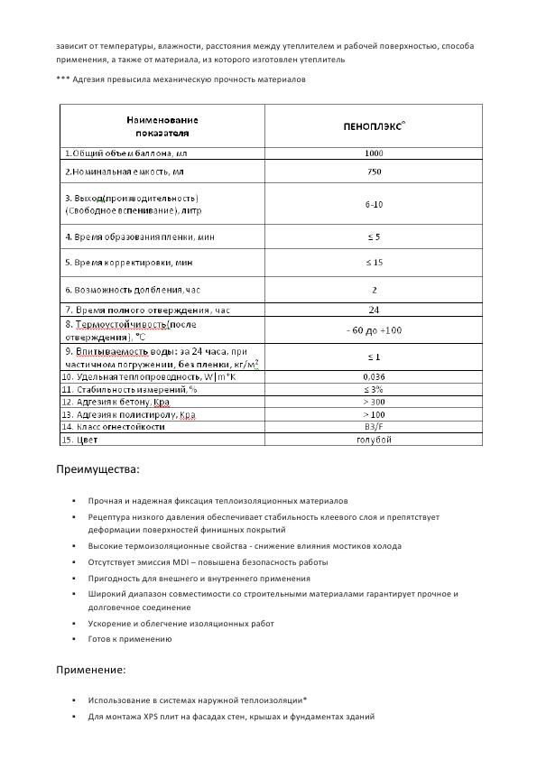 Выход (выход клея-пены при диаметре клеевой полосы 30 мм) - до 50 п.м.