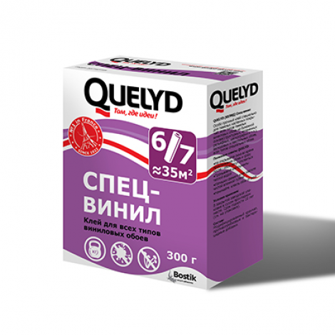 Обойный клей Quelyd СПЕЦ-ВИНИЛ - Специальный клей для любых, даже очень тяжёлых, упругих виниловых обоев, объёмных обоев, обоев с покрытием из крошки слюды и гранита.