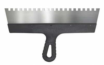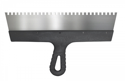 При облицовке следует правильно подбирать размер зубьев шпателя. Для плитки размером 150х150 мм рекомендуется размер зуба 6 мм, а для плитки 300х300 мм – 8 мм.