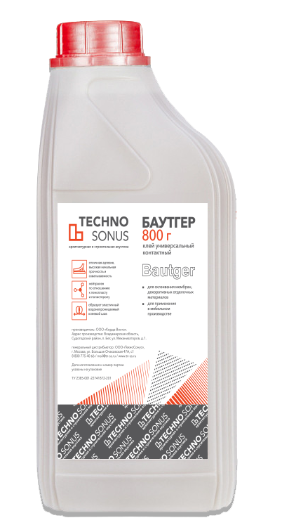 Клей Баутгер (Bautger) – контактный универсальный клей для фиксации материалов с пористой структурой (поролон, минеральная вата, войлок), декоративных отделочных материалов, а также тяжелых звукоизоляционных мембран.