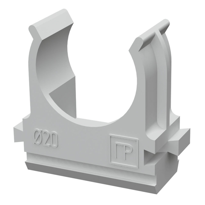 Клипса крепежная для гофрированной трубы d=20мм, серый (уп.10шт) может быть состыкована с держателем другого диаметра с помощью специальных фиксаторов.