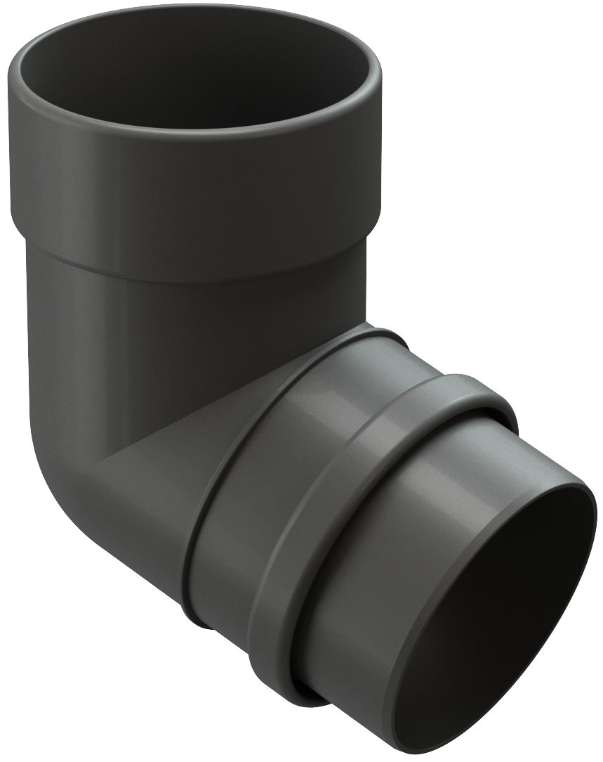 Колено трубы предназначено для перехода от воронки желоба к водосточной трубе и для обхода архитектурных фасадов под углом 72 градуса.