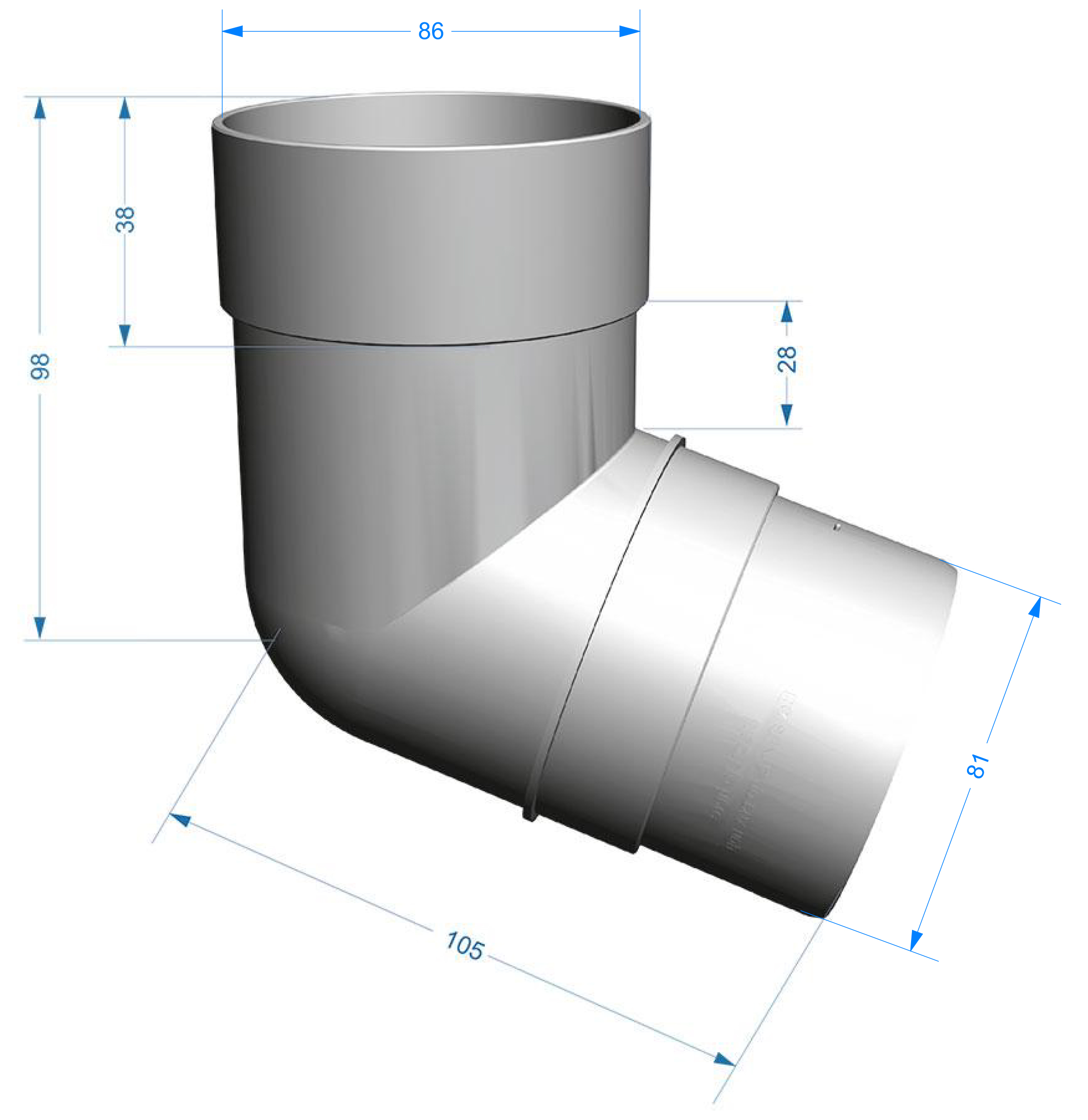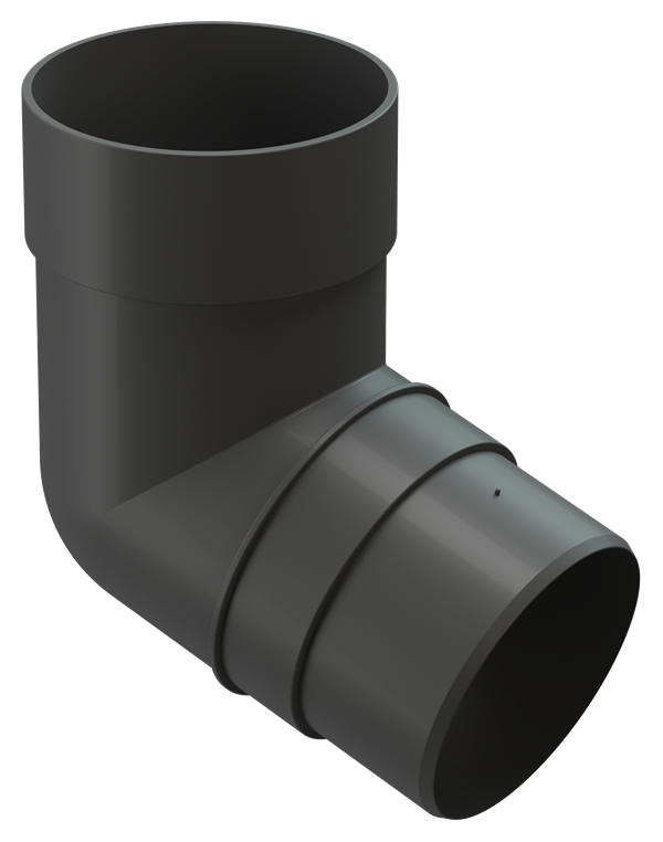 Колено трубы предназначено для перехода от воронки желоба к водосточной трубе и для обхода архитектурных фасадов под углом 72 градуса.