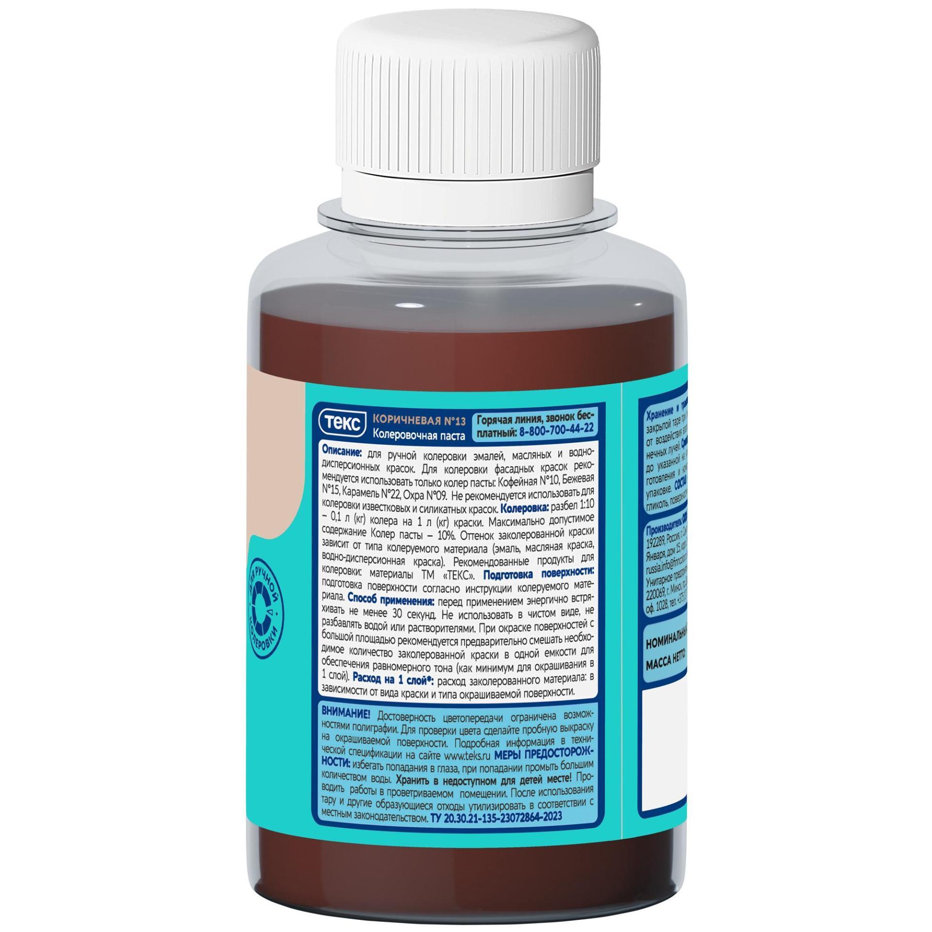 Колер для краски универсальный Текс №13 коричневый 100мл
