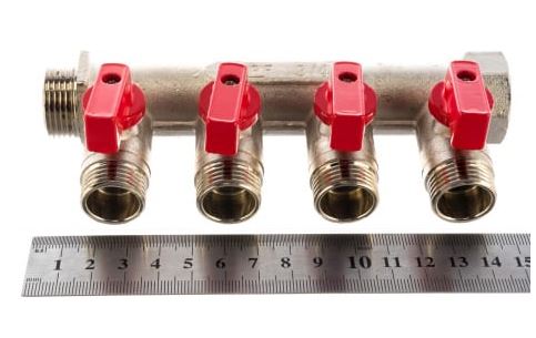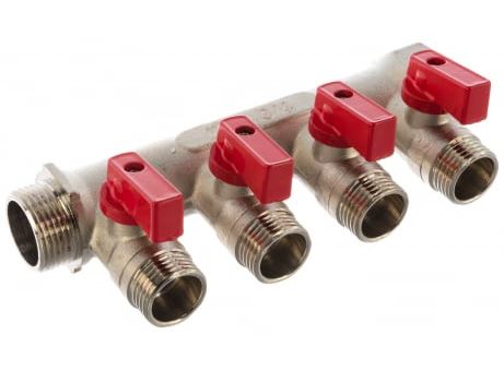 Коллектор с шаровыми кранами 4 выхода х 3/4 х 1/2 НР