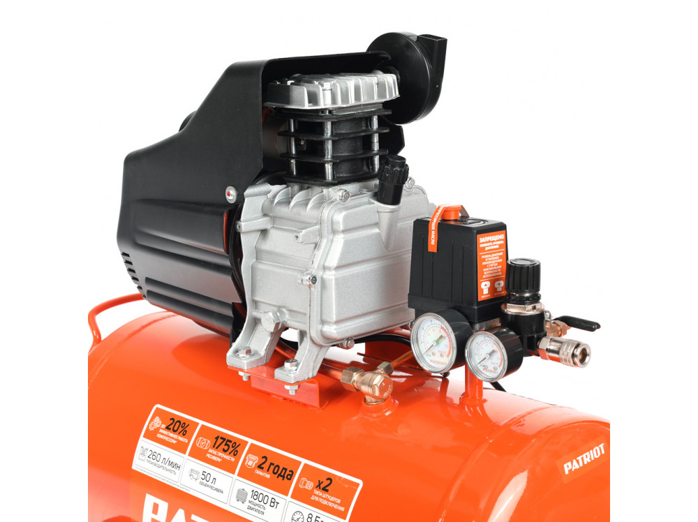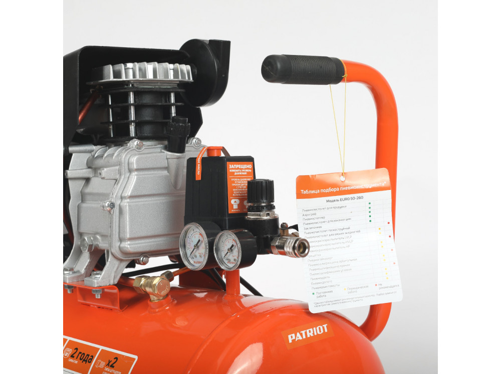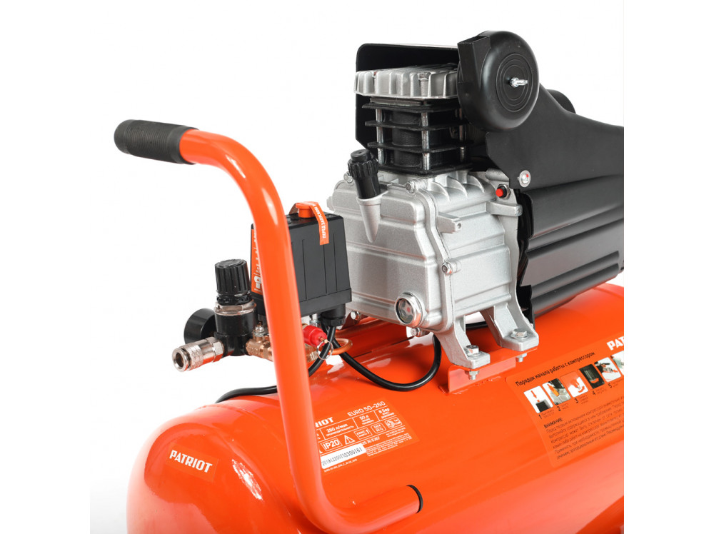 Опорные ножки обеспечивают устойчивое положение компрессора PATRIOT EURO 50-260 525306367 на поверхности, а резиновые подушечки гасят вибрации, что продлевает срок службы аппарата.