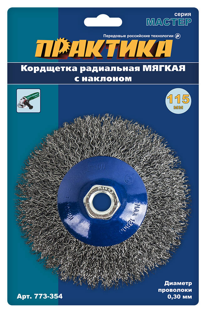 Корщетка для УШМ радиальная мягкая Практика d115 мм М14