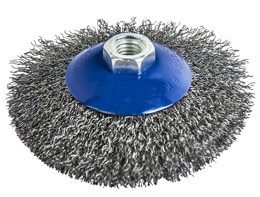 Резьбовая посадка на шпиндель. Гофрированная стальная проволока диаметром 0,2мм. Для обработки деревянных и металлических поверхностей в труднодоступных местах, снятия краски, ржавчины, обработки сварных швов.