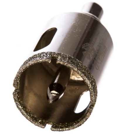 Корнка алмазная предназначена для сверления отверстий в керамической, керамогранитной и кафельной плитке при обязательном водяном охлаждении. Равномерное распределение зерна на поверхности рабочей части обеспечивает аккуратное сверление материала без трещин и сколов.