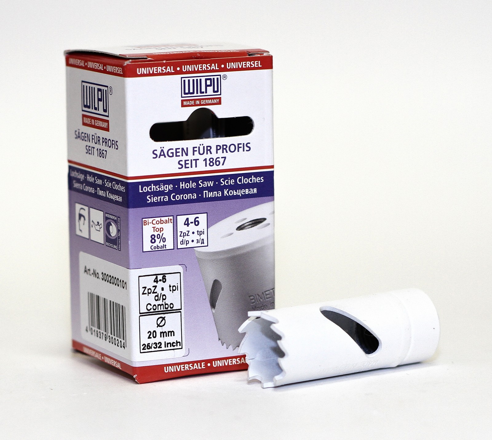 Коронка биметалл универсальная Wilpu Профи 20 мм крупный зуб