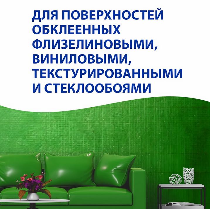 Интерьерная водно-дисперсионная краска для окрашивания всех типов обоев в помещениях с нормальной или повышенной влажностью. Также подходит для работ по новым или ранее оштукатуренным, окрашенным водно-дисперсионными красками, зашпатлеванным из бетона, газобетона, кирпича, асбоцемента, гипсокартонных плит, ДСП и другим поверхностям. Сертифицирована для детских и медицинских учреждений.
