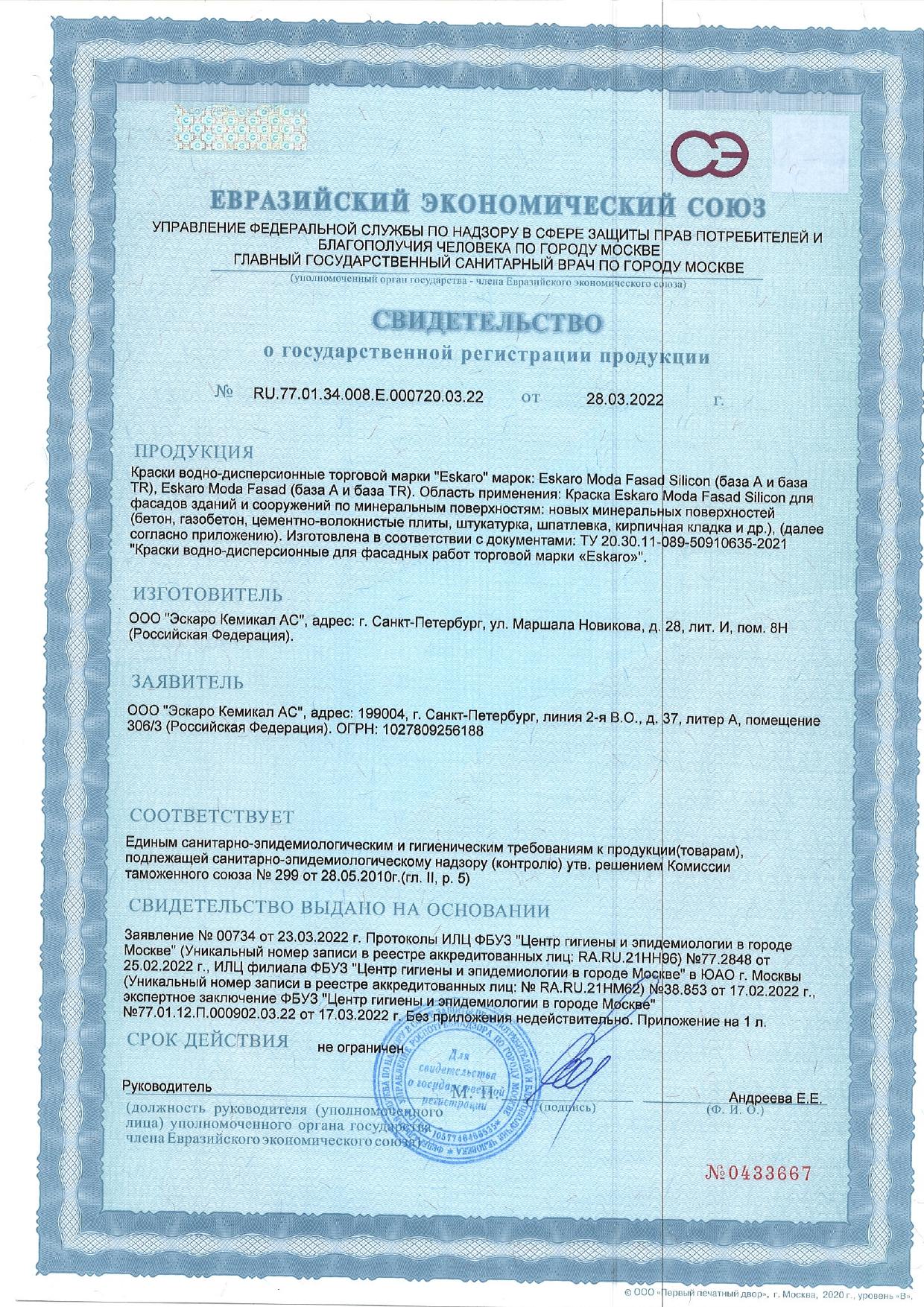 Eskaro Moda Fasad Silicon – фасадная силиконизированная краска.